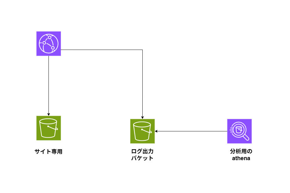 そして、S3 ログにCloudfront のログを出力して、そのログをAthena で分析するといった形になります。