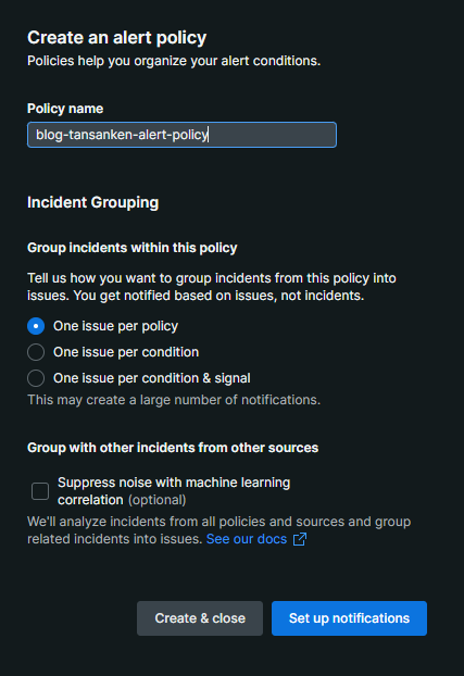 Group Incident に関しては今回は気にせず、名称のみ記述して、notification を設定していきます