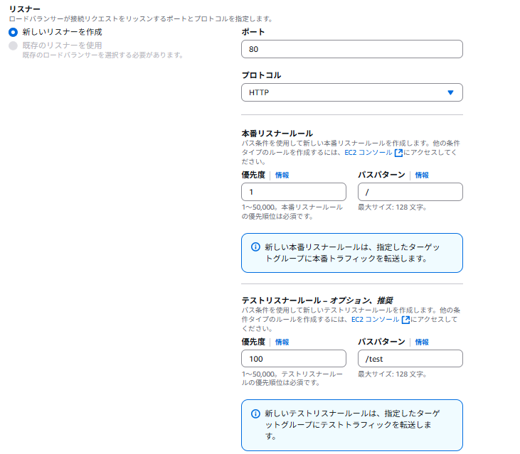 本番環境用のリスナールールとテスト用のリスナールールというのを作成することができます。