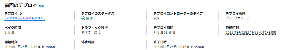 ざっくりにはなりましたが、上のフローでECS のB/G デプロイが進んでいきます。