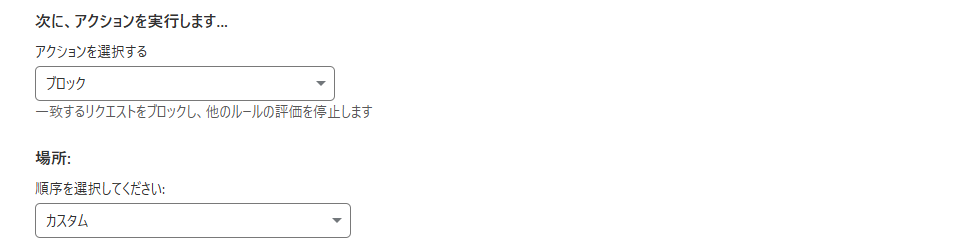 上の式で作成したようなアクセスが来た時にブロックする方式を選択します。これをすることによって、自分の許可したい自宅であったり固定IP以外からのアクセスを拒否することができます。