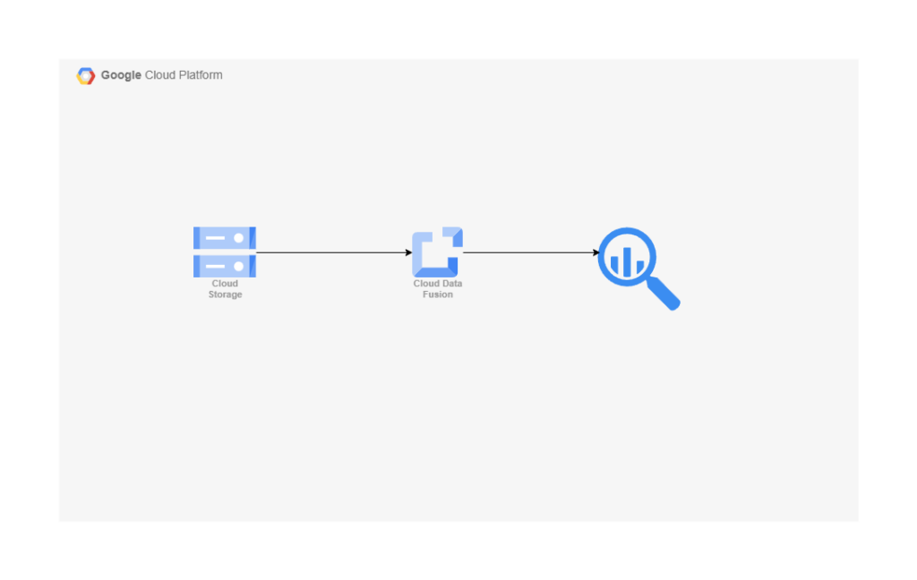Cloud storage が Extract の部分です。 Transform がCloud Data Fusion です。最後にLoad の箇所が、Big Query です。Cloud storage にためてあるデータ(Data Lake) をData Fusion で加工して使う方法になります。