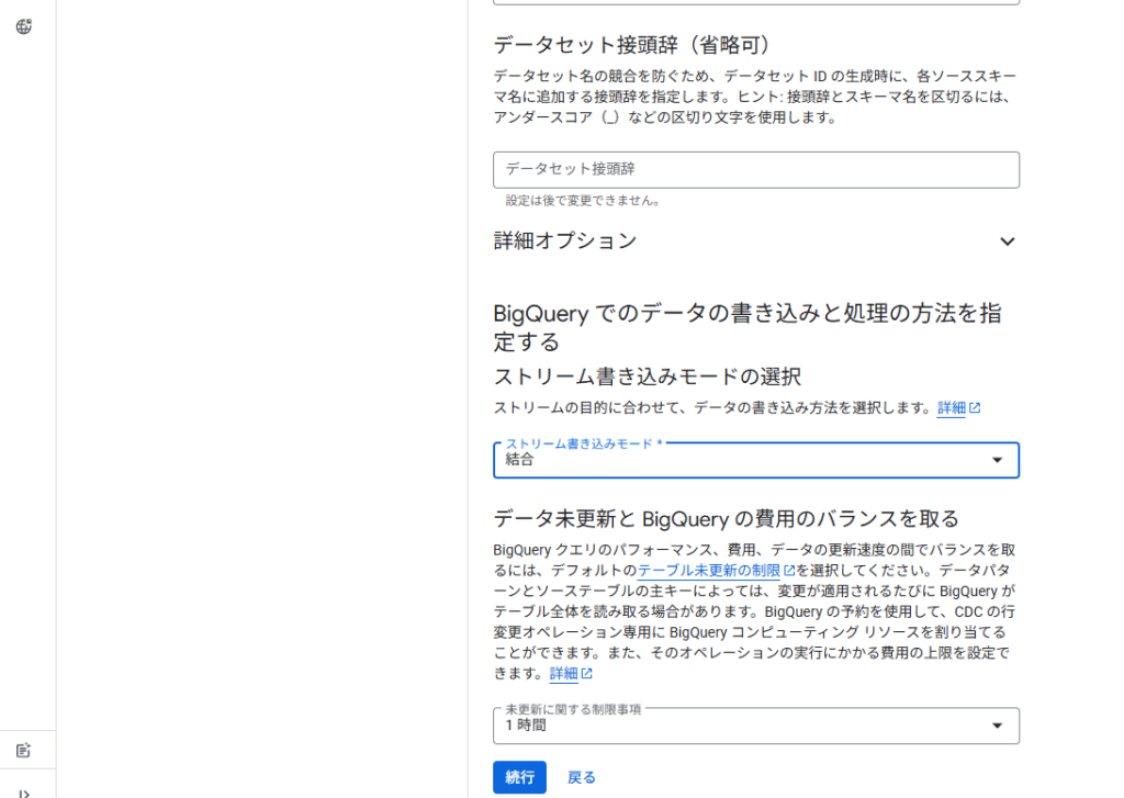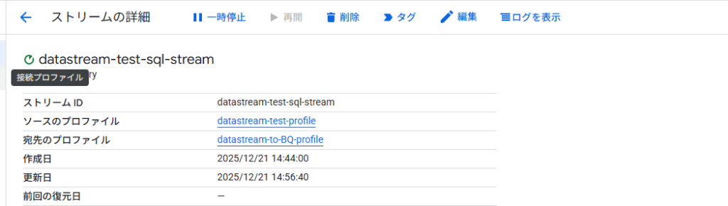 BQ と Datastream プロファイル設定